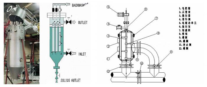 4、PLC控制:過濾器配有全套控制系統(tǒng),在進(jìn)出壓差達(dá)到給定值(可調(diào)),控制系統(tǒng)發(fā)出指令,啟動(dòng)反吹程序,令濾芯分組按程序進(jìn)行反吹,使壓差恢復(fù)到原始值,使設(shè)備達(dá)到不間斷連續(xù)運(yùn)行;